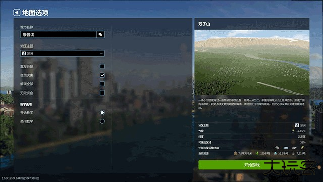 5、对所选择地图进行细节调整(如地形、起始资金等),完成设置后点击 “开始游戏” 按钮;