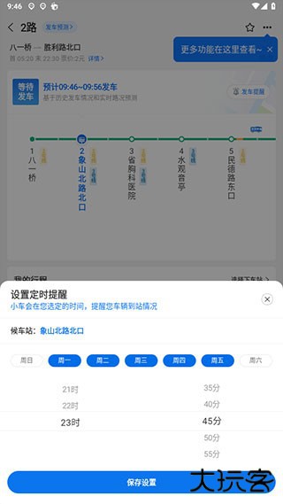 4、赶车闹钟:可设定常用线路,到站前智能提醒,准时出发。