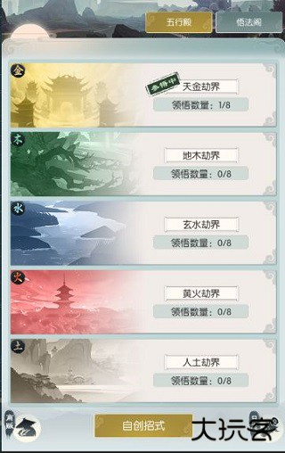 拥有参悟完成的图谱,道友就可以点击主界面的 【自创招式】。这里需要: