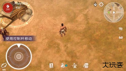 1、启动游戏进入西部荒野场景,点击左侧虚拟摇杆区域拖动手指控制角色移动方向。