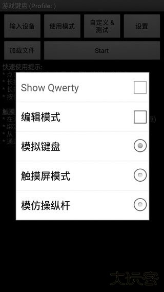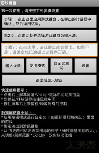 1、启动虚拟键盘应用,查看屏幕显示的快速使用指南及触摸屏仿真提示;