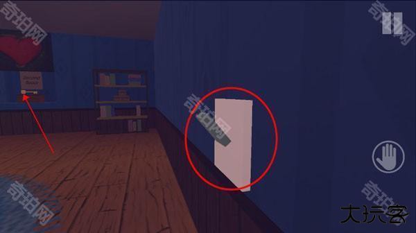 4、横向推开有鸭子图案的门。进入密室,从抽屉里获得钥匙