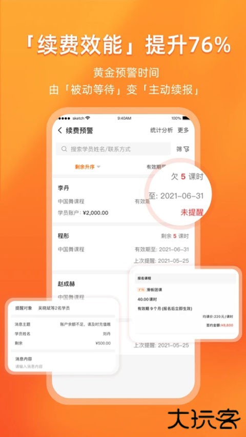 2、多维度数据分析:提供销售、教务、财务等数据统计,辅助机构决策。
