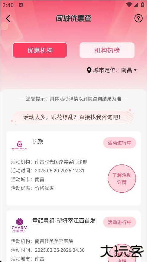 3、软件提供了两种排行榜,分别是优惠机构以及热榜机构