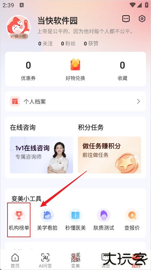 2、然后再个人主页往下滑找到机构排行榜点击进入