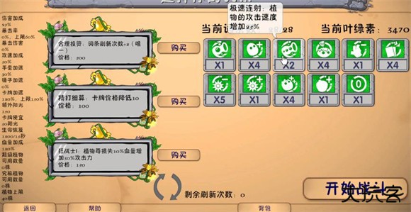 4、游戏界面中,你可以将两种植物种在同一个格子上,它们会融合成一个新的植物,例如向日葵融合豌豆射手,就变成了拥有双重能力的“向日葵豌豆射手”。