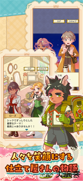 微笑裁缝店是一款日系像素画风的模拟经营游戏。玩家身为裁缝店的老板,每日需要接待不同客人,完成他们的订单任务。忙不过来了就赶快招牌员工来为你工作,花费一定的金币解锁新的服装,新的任务。除了定制衣服之外,有的客人还会来改衣服哦。完成对应的配方收藏,升级店铺,学习新的技能。