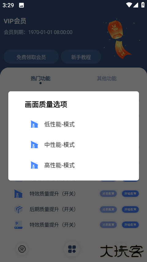 3、app里每种功能都拥有低性能、中性能、高性能三种模式选择;