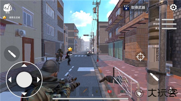 5、确定关卡后正式投入战斗。左下角虚拟摇杆控制人物移动方向,手指在区域里自由滑动,幸存者就会跟着你的操控路线行进。