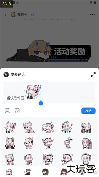 3、用户可以在社区内交流创作,分享游戏体验、玩法心得以及其他动态,比如创作一些同人插画、漫画或者同人文进行分享。发布帖子的格式很自由,可以是图文或者纯文,甚至是表情包(APP内已准备了大量的表情包素材),可以直接使用。