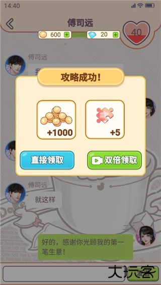 5、遇到特殊顾客时,每句对话都有讲究,聊得开心对方才会心动,心形进度条攒满才能成为好朋友。
