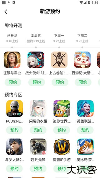 5、如果想预约游戏可以点击最后一个模块中的“新游预约”,选择自己想要的游戏进行预约
