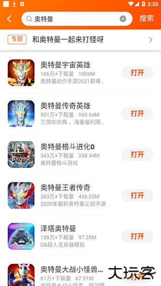 2、点击最上方搜索框,输入想搜索的游戏名称(例如:奥特曼)并点击搜索,页面就会显示出现想要的游戏或与之相关的游戏