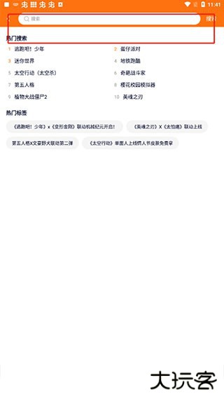 2、输入游戏名称,例如逃跑吧少年,然后点击搜索