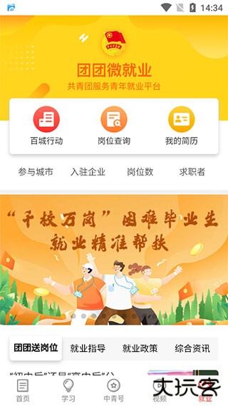 8、点击就业即可查看团团微就业所提供的就业指导。
