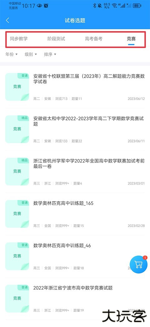 2、然后在试卷选题中选择试卷