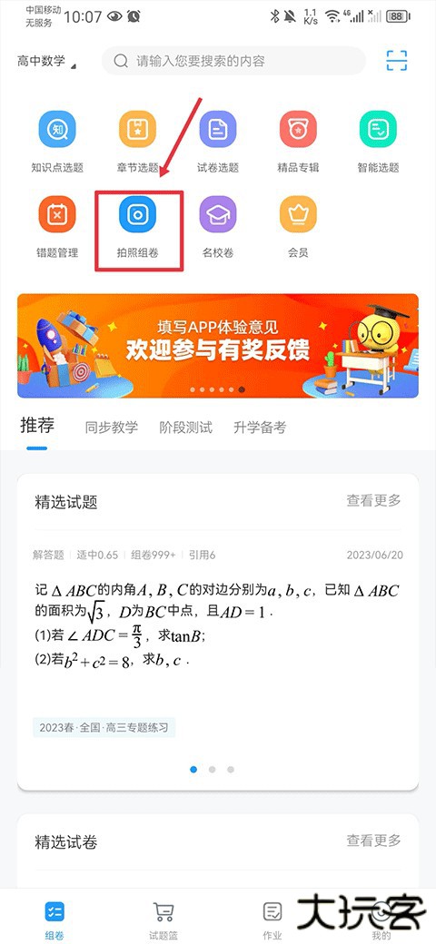1、在app组卷界面中点击拍照组卷功能