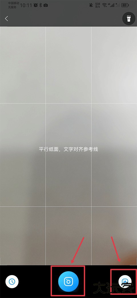3、进入后将手机对着试题并点击拍照按键即可,当然你也可以在相册中选择试题图片