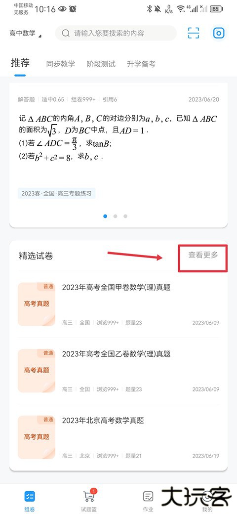 1、在组卷界面中的精选试卷内点击查看更多