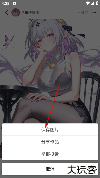2、通过长按图片来打开菜单,并选择【保存图片】。