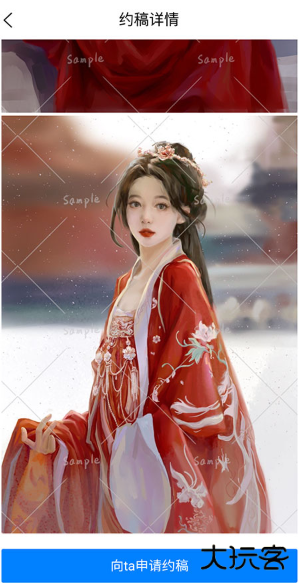 5、滑动至页面最下方,点击【向ta申请约稿】即可。