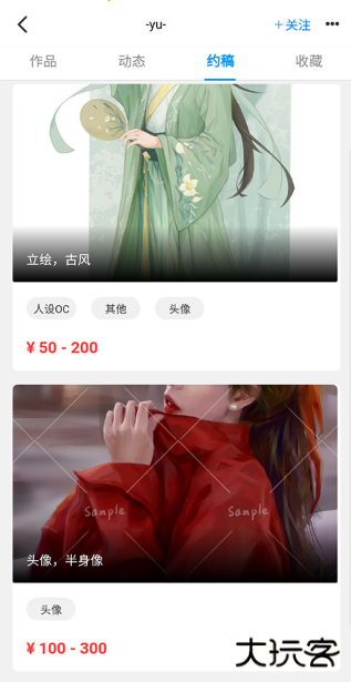 3、切换到【约稿】页面,并选择不同的【约稿类型】。