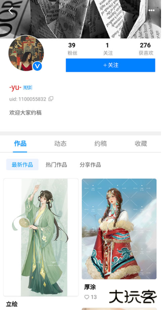 2、找到自己满意的画师后,点击进入TA的【主页】。