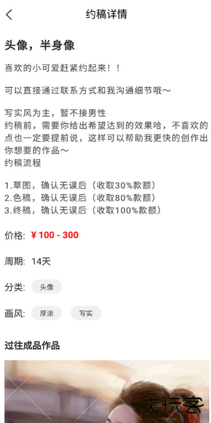 4、仔细阅读【约稿详情】,里面有流程、价格,周期等说明。