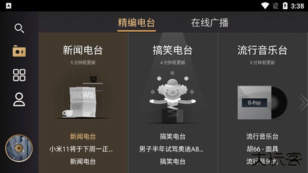 2、成功进入软件首界面,可以看到有各种类型的精编电台;