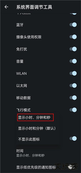 3、往下划找到时间,选择显示小时、分钟和秒。