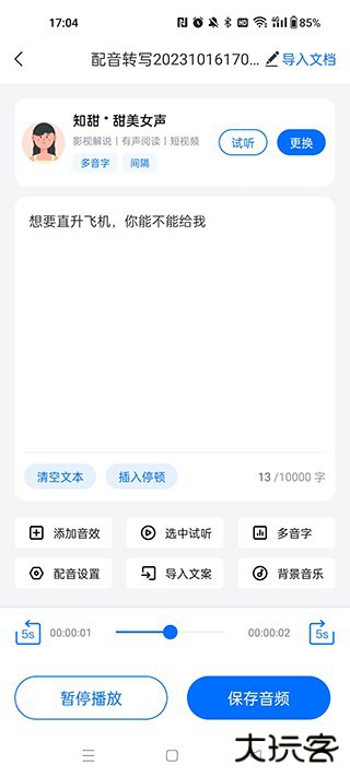 3、点击播放或试听,确认配音效果。