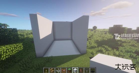 接下来地基两侧和屋的后面立起来围墙,高度为7格。