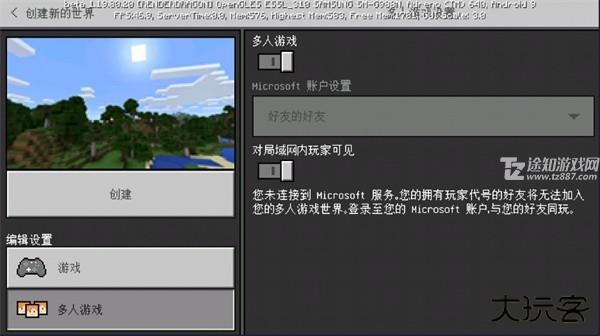 8、成功后,返回首页创建世界,在创建新世界点击多人游戏,点击创建新世界即可。