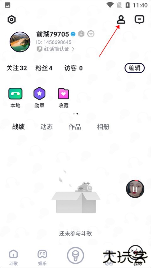 1、用户登录应用后进入【我的】页面中点击右上角第一个小人图标(下图红色箭头所指)