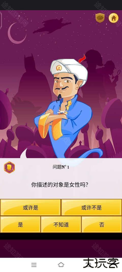 akinato网络天才这是一款以阿拉丁灯神为题材的问答测试小游戏,拥有网页版、手机版和Lite版,此版本免费移除广告,只要你问灯神,他就可以通过几个问题来判断你的答案,想读心术一样非常准确,适合所有年龄段的玩家游玩!