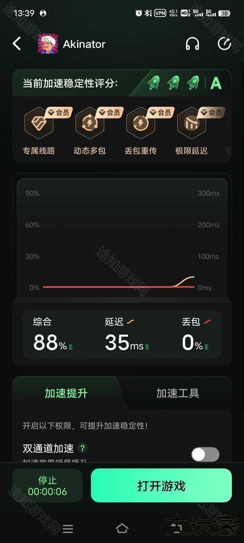 1.在本站下载安装Akinator中文版,游戏需加速器启动,打开奇游手游加速器,找到该游戏,然后点击右侧加速;