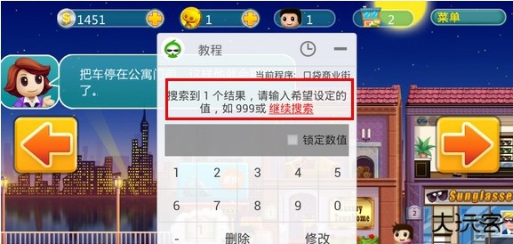 6、经过多次搜索(至少1次搜索)后,当查找到正确的内存地址时,界面出现如下提示,即可修改,然后输入你想要修改的数据即可修改成功!