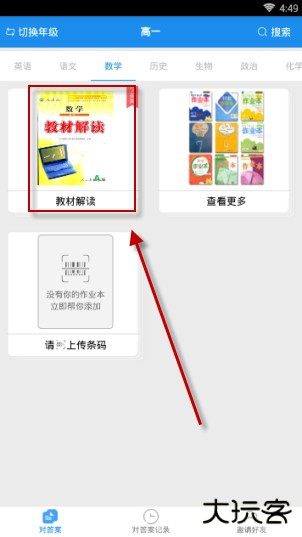 1、打开作业大师秒开软件后,我们先来到具体的课目,有数学、英语、物理、化学等课目。