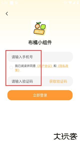 1、打开布橘小组件安卓版app,弹出【隐私政策与用户协议】窗口,点击【同意】。