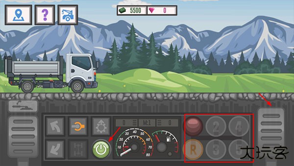 2、轻按启动按钮让发动机运转起来,选择合适的档位挂入。点踩油门踏板让卡车动起来!想成功运送货物?那就得全程留心车速保持稳定,尤其是爬坡时,档位可要跟着情况及时调整切换,这点非常重要。