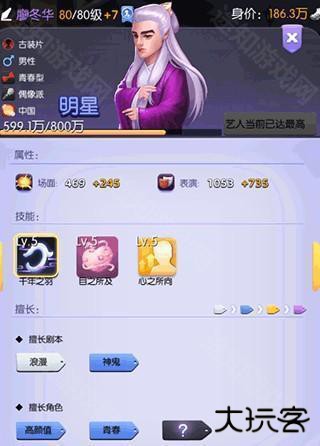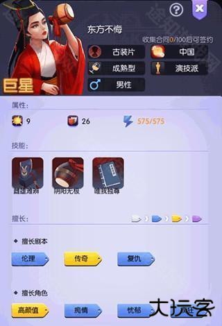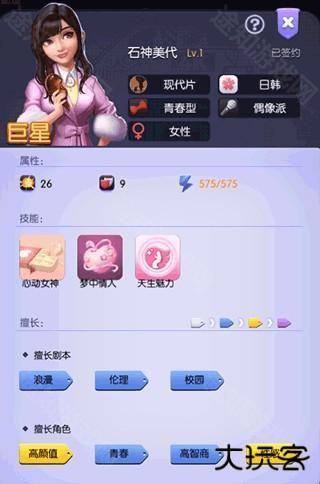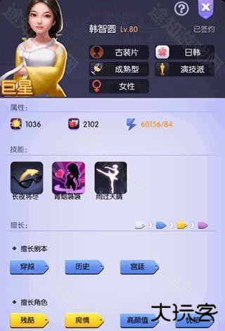 身为一张可以在“钻石星探”可以抽到的巨星,获取难度会相对比较低一点,该艺人擅长角色与剧本比较偏,一般在现代与古装偏兼容率会较高一点。