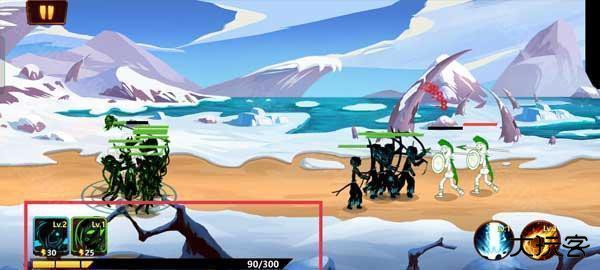 1、通过能量进度条召唤兵种,兵种会自动攻击,玩家英雄也会参与战斗。
