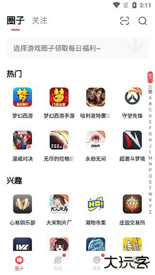 3、在圈子当中,提供了超级丰富的游戏版块,选中一个即可在里面发帖