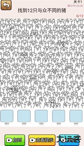 2、每一关都有特殊玩法,例如第一关就是比找到12只不同的猪。