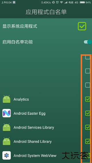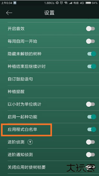 4、在白名单中勾选需要保留的应用,避免运行后导致树木枯萎。