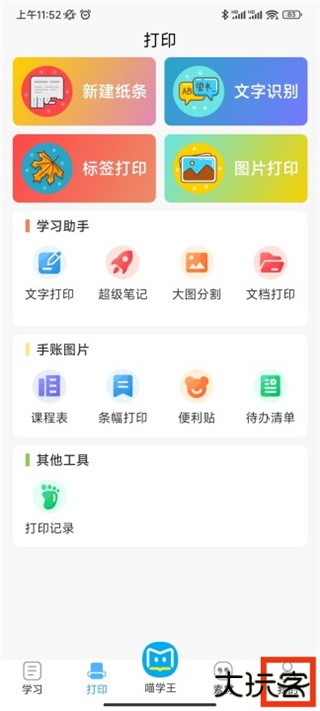 1、下载进入喵学王app,在首页点击右上角的“+连接设备”或者直接点击“喵学王”进入选择打印机的界面;