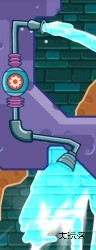 第八关就简单很多,但是需要在挖开土的同时推着屏幕往下走。上面的问号就知道本关也有物件可以收藏,也算是前两关比较难的一点小补偿把~到了紫色水的部分一定要把旁边挖开一部分,能触发收藏任务。到中下部分一定要区分水管!右边是给小鳄鱼洗澡的水(需要较多),而右边只需要一小部分点亮鸭子即可。最后就可以完美通关啦~