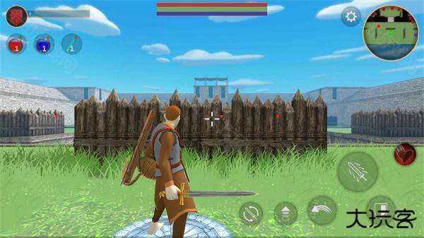 4、当敌人离我们很远时,我们就可以点击下方箭头进行切换弩弓来攻击;