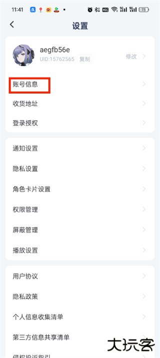 3、点击【账号信息】