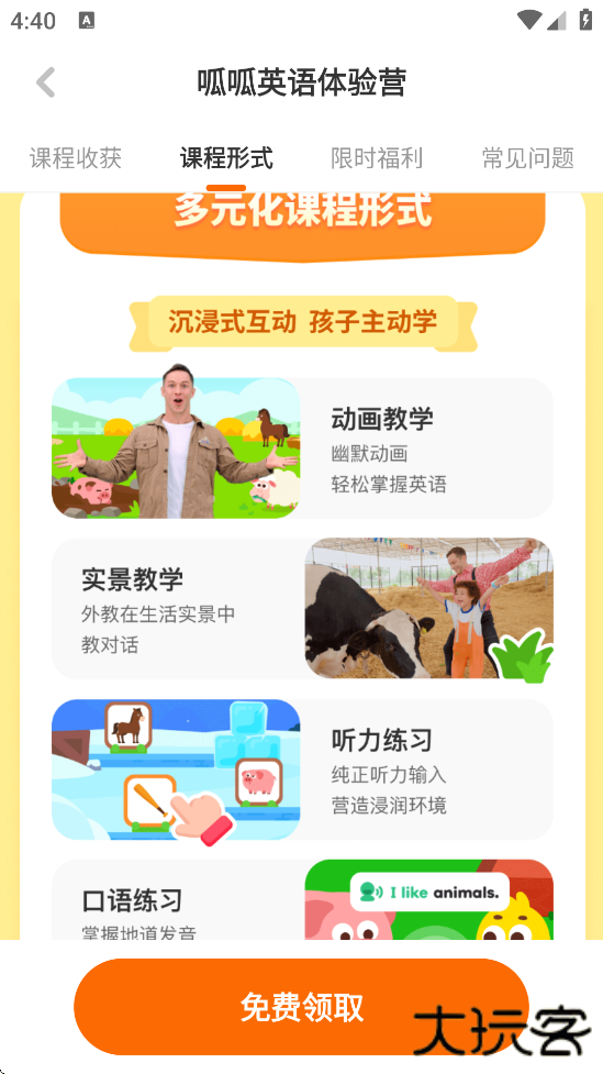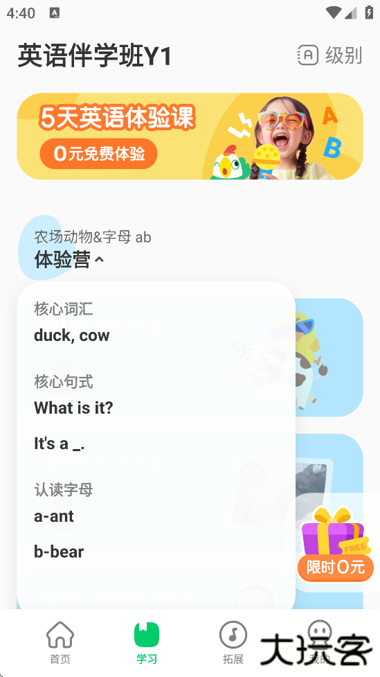 1、分龄分级课程体系:覆盖0-8岁儿童,分为早教课(种子/萌芽路线)和启蒙课(L0-L6),内容从儿歌磨耳朵到自然拼读、自主阅读逐步进阶。